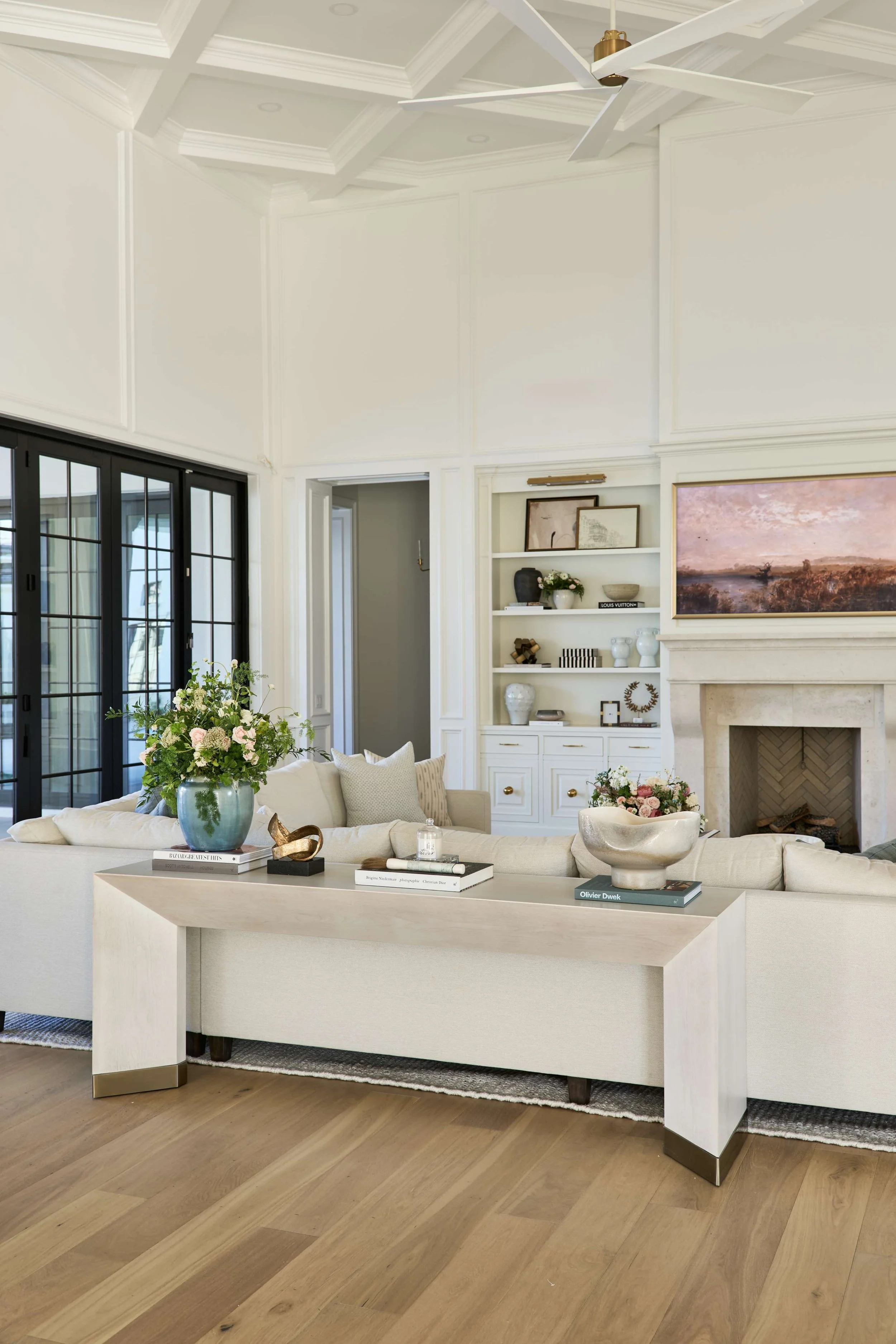 To make this room even more special, the architect incorporated a stunning coffered ceiling design, adding depth and visual interest. I love how it elevates the space. Our design team spent hours perfecting the millwork on the walls, and the effort was well worth it—it’s truly one of the most unique features of this home.